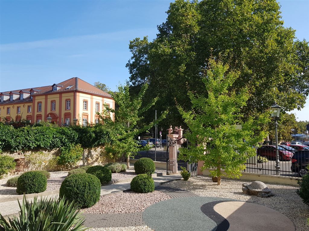 direkt am Marktplatz, dem Schloß mit Seniorenheim und dem angrenzendem Schloßgarten.