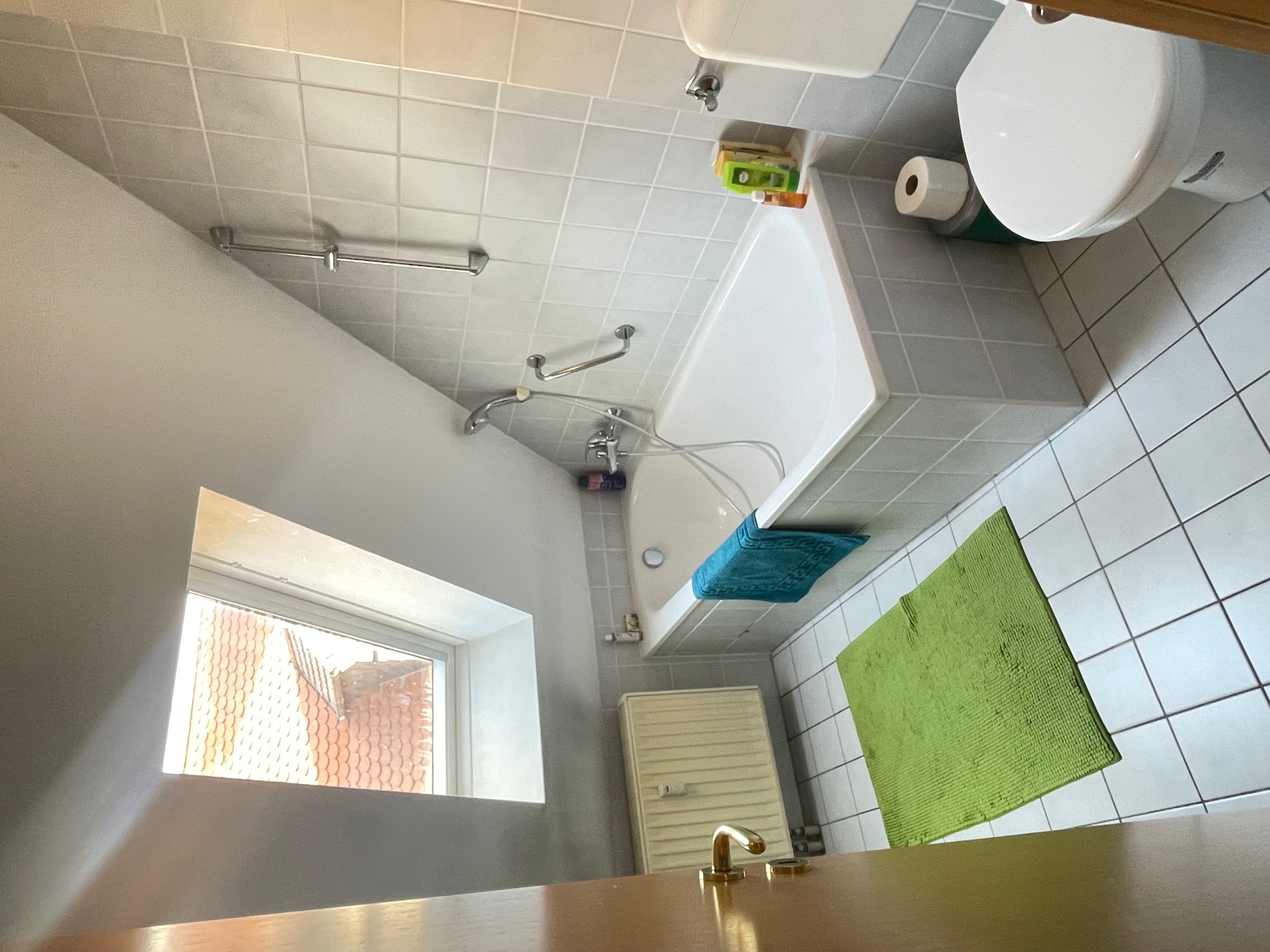 Das Badezimmer ist mit einer Badewanne, WC und Waschmaschinenanschluss ausgestattet.
