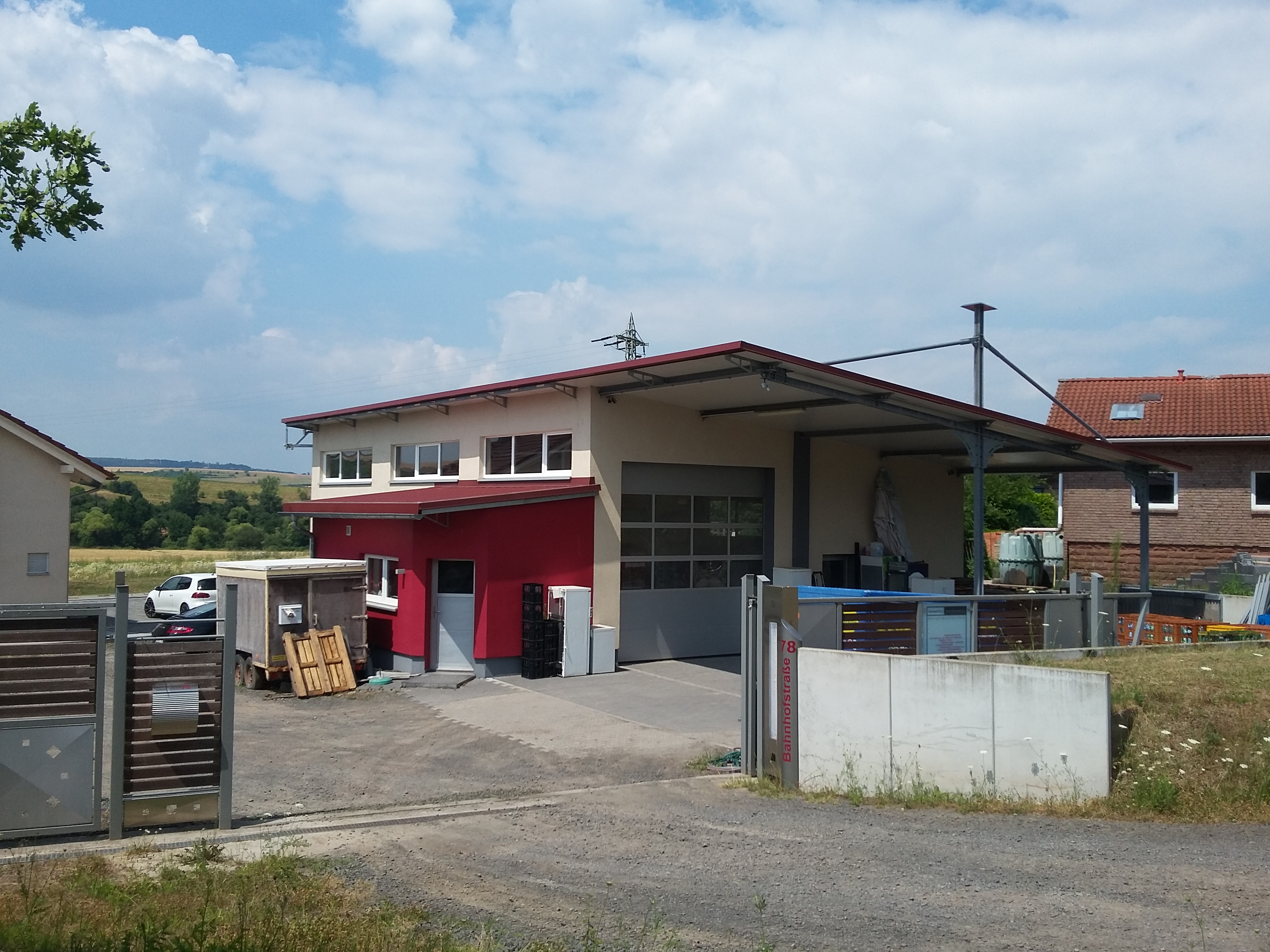 Auf dem Grundstück befindet sich außer der Gewerbehalle auch das vom Eigentümer genutzte Wohnhaus.